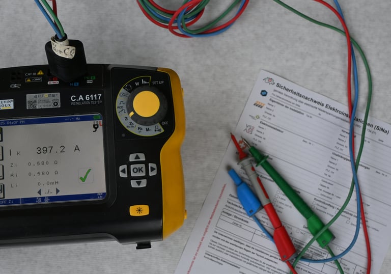 Wir prüfen Ihre elektrischen Geräte nach der aktuellen Norm SNG 482638 – fachgerecht und normenkonform. Durch die wiederkehrende Kontrolle und die Prüfung nach Instandsetzung stellen wir sicher, dass Ihre Betriebsmittel keine Gefahr für Mitarbeitende, Kunden und Anlagen darstellen. So reduzieren Sie das Risiko von Stromschlägen und Bränden und erfüllen gleichzeitig Ihre gesetzlichen Pflichten als Arbeitgeber.